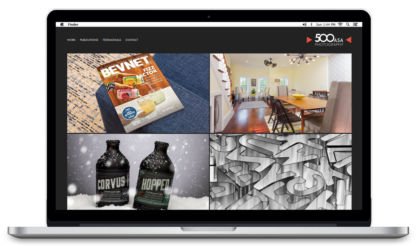 My first freelance venture was as a photographer specializing in products and interiors. Below are the logo, website, and business cards I designed to represent the brand. I aimed for a look that was simple yet subtly decorative, inspired by the design of old manual focus lenses without leaning on cliché. The final result draws from the arrows and textured grip of the focus ring, creating an abstract but distinctive mark.
